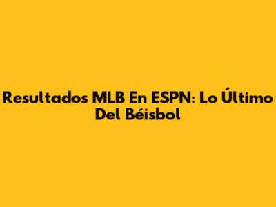 Resultados MLB En ESPN: Lo Último Del Béisbol