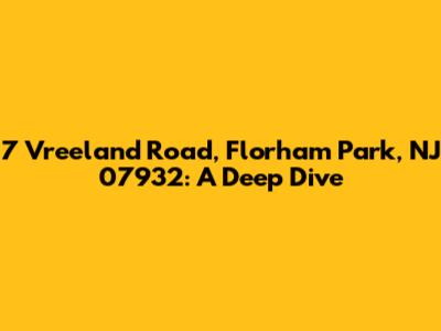 Hey there, real estate enthusiasts! Today, we're taking a closer look at a specific address: 7 Vreeland Road, Florham Park, NJ 07932. This seemingly simple string of numbers and letters actually unlocks a world of information for those interested in the Florham Park area. Whether you're considering a move, curious about property values, or just love a good deep dive into local real estate, you've come to the right place. We'll explore everything from the property's potential, to the neighborhood vibe, and even touch on the history of this charming New Jersey town. So, grab your coffee, get comfy, and let's unravel the secrets of 7 Vreeland Road!