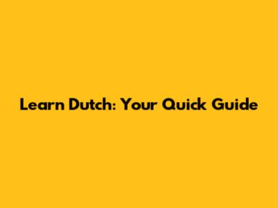 Learn Dutch: Your Quick Guide