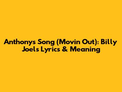 Anthony's Song (Movin' Out): Billy Joel's Lyrics & Meaning