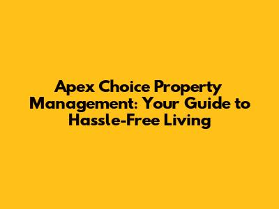 Hey there, property owners and renters! Are you looking for a top-notch property management company that can take the stress out of owning or renting a property? Well, look no further! This article dives deep into everything you need to know about Apex Choice Property Management. We'll cover their services, their approach, and why they might just be the perfect fit for your needs. Whether you're a seasoned investor or a first-time renter, this guide is packed with valuable insights to help you navigate the world of property management like a pro. We'll explore how they handle property maintenance, tenant relations, and financial management, all while keeping your peace of mind a top priority. So, buckle up, grab a coffee (or your beverage of choice), and let's get started on this exciting journey to discover how Apex Choice can transform your property experience. This is your all-in-one resource for understanding what makes Apex Choice Property Management stand out from the crowd and how they can help you achieve your property goals with ease and efficiency.