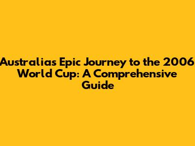 Australia's Road To The 2006 World Cup: A Historic Journey