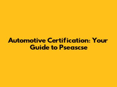 Automotive Certification: Your Guide To Pseascse