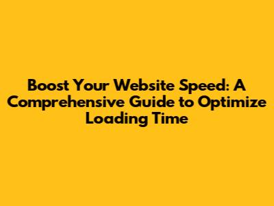 Boost Your Website Speed: A Comprehensive Guide to Optimize Loading Time