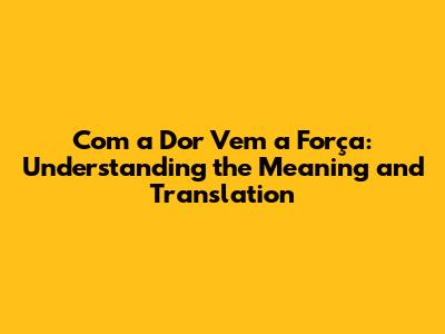 Hey guys! Ever heard the saying "Com a dor vem a força"? It's a Portuguese phrase that's packed with meaning. Literally, it translates to "with pain comes strength" in English. But it's so much more than just a direct translation. It's a whole philosophy about resilience, growth, and the human spirit. In this article, we're going to dive deep into what this phrase really means, how it's used, and why it resonates with so many people. So, stick around and let's explore this powerful idea together!