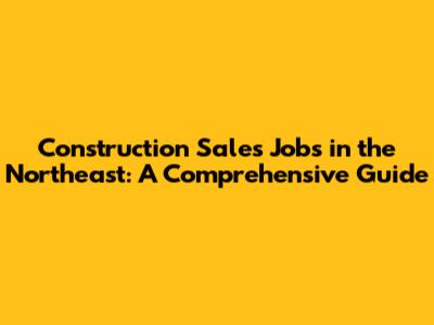 Construction Sales Jobs In The Northeast: A Comprehensive Guide