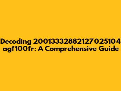 Alright, guys, let's dive deep into the mysterious world of "20013332882127025104 agf100fr." What is it? What does it mean? Why should you even care? This comprehensive guide aims to break down every aspect of this alphanumeric string, offering you clarity, insights, and perhaps even a bit of enlightenment. Whether you stumbled upon this code in a dusty archive, received it in a cryptic message, or simply found it floating around the internet, we're here to unpack its secrets. Get ready to embark on a journey of discovery, where we'll explore potential meanings, possible origins, and practical applications of this intriguing sequence. So, buckle up, grab your metaphorical magnifying glass, and let’s get started!