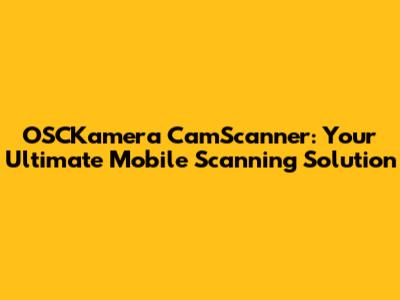 OSCKamera CamScanner: Your Ultimate Mobile Scanning Solution