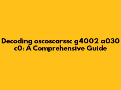 Understanding the Anatomy of 'oscoscarssc g4002 a030 c0'