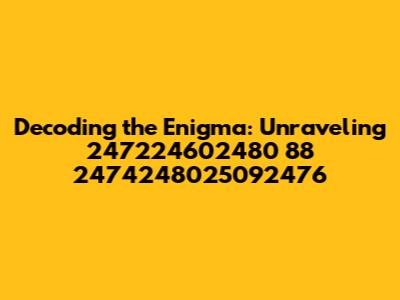 Hey guys! Ever stumble upon a string of numbers that just seems… mysterious? You're not alone! Today, we're diving deep into the world of 247224602480 88 2474248025092476. Yeah, I know, it looks like something out of a sci-fi movie, but trust me, we're going to break it down. We'll explore what it might represent, the different ways we can interpret it, and maybe, just maybe, uncover some hidden meanings. This exploration is all about figuring out what lies beneath the surface of this numerical sequence. Let's get started on our adventure of discovery. Consider it as a puzzle that we're trying to solve together, step by step, so we can finally crack the code. Let's begin by acknowledging that numbers can be cryptic, holding complex information. Don't worry if it seems overwhelming at first; we'll break it down into manageable parts. Each digit and the combination of numbers can represent different concepts, data points, or even hidden messages. It's like being a detective, piecing together clues to solve a complex mystery. Are you ready to see what's behind this numerical riddle? It’s going to be a fun exploration, and who knows what we might find? Together, let’s decipher this numerical sequence! Don't let the seemingly complex nature of it intimidate you. The goal is to shed light on what these numbers represent, breaking down their potential meanings and the context in which they might be used. We'll analyze the sequence, look at possible interpretations, and explore any relevant patterns. We're going to think like digital detectives! Ready to join me on this exciting journey? So, what does this numerical sequence hide?