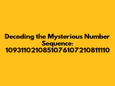 Alright, let's put on our detective hats and consider some potential meanings for the number sequence. 1093110210851076107210811110 could potentially represent several things, each requiring a different approach to decode. Here are a few interpretations to consider, ranging from the most straightforward to the more abstract: