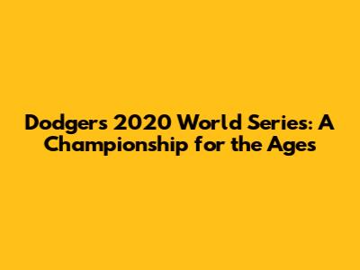Dodgers 2020 World Series: A Championship For The Ages