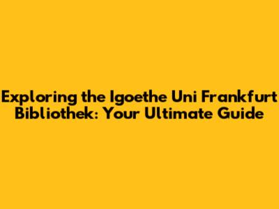 Unveiling the Igoethe Uni Frankfurt Bibliothek: A Comprehensive Overview
