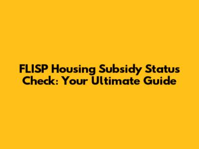 How to Check Your FLISP Housing Subsidy Status: Step-by-Step Guide