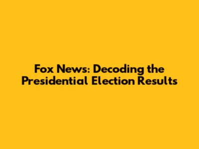 Fox News: Who Won The Presidential Election?