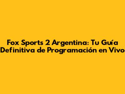 ¡Hola, fanáticos del deporte! ¿Están listos para sumergirse en el emocionante mundo de Fox Sports 2 Argentina? En este artículo, les proporcionaremos una guía completa sobre la programación en vivo de Fox Sports 2, para que nunca se pierdan ni un segundo de la acción. Exploraremos qué ofrece este canal, cómo acceder a su programación, y les daremos algunos consejos útiles para disfrutar al máximo de la experiencia deportiva. ¡Prepárense para una dosis épica de fútbol, tenis, automovilismo y mucho más!