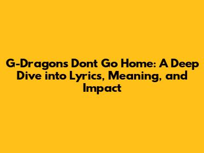Hey everyone! Let's dive deep into the world of K-Pop and dissect one of G-Dragon's most compelling tracks: "Don't Go Home." This song isn't just a catchy tune; it's a journey through emotions, relationships, and the complexities of life. We'll be exploring the lyrics, the underlying meaning, and the lasting impact this song has had on fans and the music industry. So, grab your headphones, get comfy, and let's unravel the magic of "Don't Go Home" together!