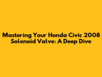 What's up, car enthusiasts! Today, we're diving deep into a topic that might sound a bit technical, but trust me, guys, it's super important for keeping your ride running smoothly: the solenoid valve in your Honda Civic 2008. This little component plays a crucial role in a few key systems, and understanding it can save you a headache (and some serious cash) down the line. We'll be covering everything from what it is, how it works, common issues, and what you can do to keep it in tip-top shape. So, buckle up, grab your favorite wrench (or just your curiosity), and let's get this done!
