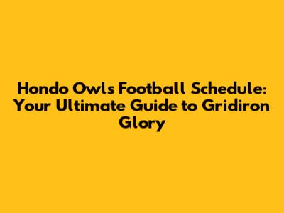 Hondo Owls Football Schedule: Your Ultimate Guide