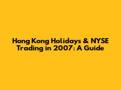 Hong Kong Holidays & NYSE Trading In 2007: A Guide