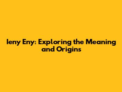 Ieny Eny: Exploring The Meaning And Origins