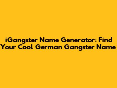 Hey guys! Ever wondered what your German gangster name would be? Well, you're in luck! This article is all about helping you find the perfect iGangster name that's both cool and authentically German. Whether you're writing a story, creating a character for a game, or just having some fun, we've got you covered. Let's dive into the world of iGangster name generation and discover how you can come up with something truly awesome!