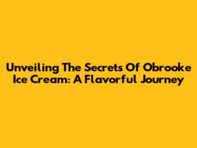 Unveiling The Secrets Of Obrooke Ice Cream: A Flavorful Journey