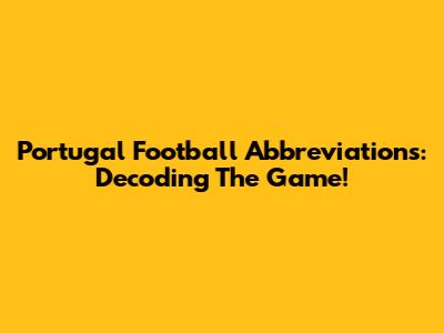Portugal Football Abbreviations: Decoding The Game!