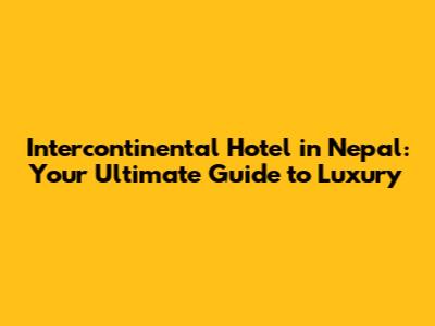 Intercontinental Hotel In Nepal: A Luxurious Guide