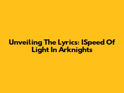 Unveiling The Lyrics: ISpeed Of Light In Arknights