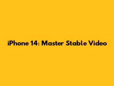 IPhone 14: Master Stable Video