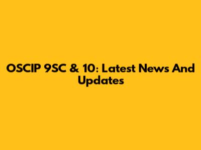 OSCIP 9SC & 10: Latest News And Updates
