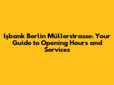 Hey guys! Are you looking for the Işbank Berlin Müllerstrasse branch and trying to figure out their opening hours? You've come to the right place! This guide will provide you with all the essential information you need, ensuring you can plan your visit without any hassle. Let's dive into everything you need to know about this particular branch of Işbank in Berlin.
