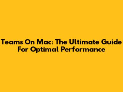 Teams On Mac: The Ultimate Guide For Optimal Performance