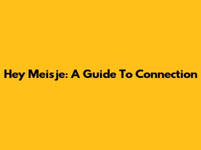Hey Meisje: A Guide To Connection