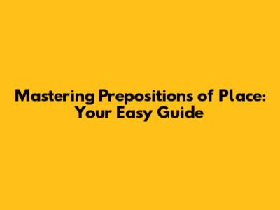 What Exactly Are Prepositions of Place?