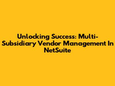 Unlocking Success: Multi-Subsidiary Vendor Management In NetSuite
