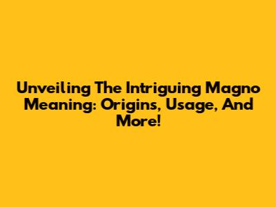 Unveiling The Intriguing Magno Meaning: Origins, Usage, And More!