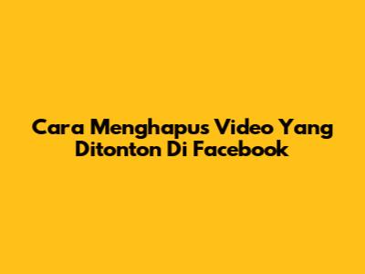 Cara Menghapus Video Yang Ditonton Di Facebook