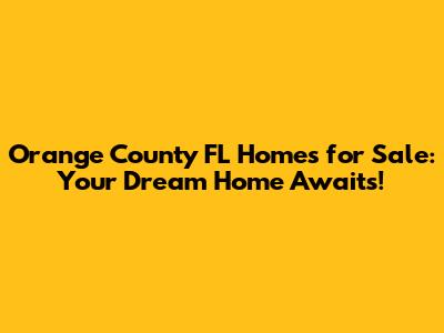 Orange County FL Homes For Sale: Your Dream Home Awaits!