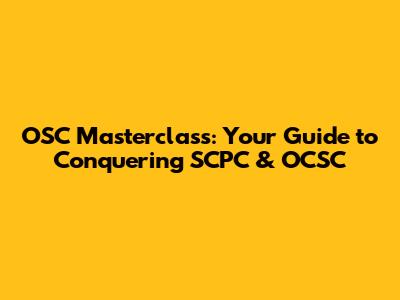 OSC Masterclass: Step-by-Step Tutorials for SCPC & OCSC