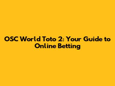 OSC World Toto 2: Your Guide To Online Betting
