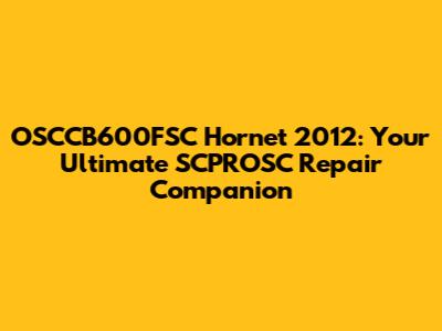 OSCCB600FSC Hornet 2012: Complete SCPROSC Repair Guide
