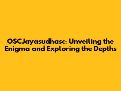 Demystifying OSCJayasudhasc: What's the Deal?