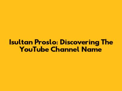 Isultan Proslo: Discovering The YouTube Channel Name