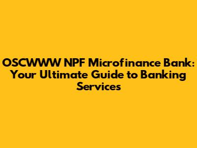 OSCWWW NPF Microfinance Bank: Your Guide To Banking Services