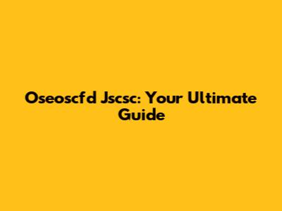Why Oseoscfd Jscsc Matters in Today's World