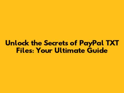 Hey guys! Ever stumbled upon those mysterious .txt files related to PayPal and wondered what they're all about? You're not alone! Today, we're diving deep into the world of PayPal TXT files, exploring what they are, why they're important, and how you can effectively use them. Whether you're a seasoned PayPal user or just getting started, understanding these files can seriously level up your financial game and help you keep things organized.
