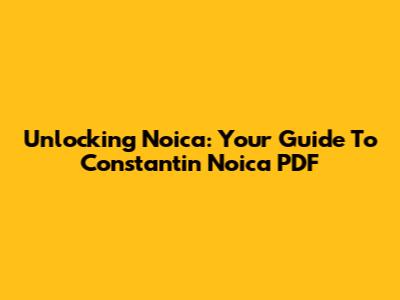 Unlocking Noica: Your Guide To Constantin Noica PDF