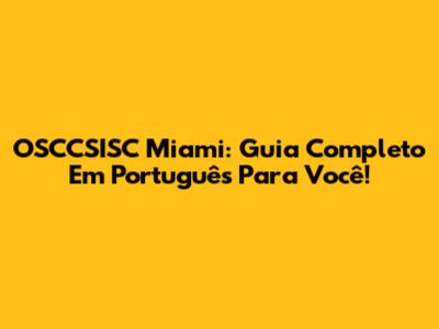 OSCCSISC Miami: Guia Completo Em Português Para Você!